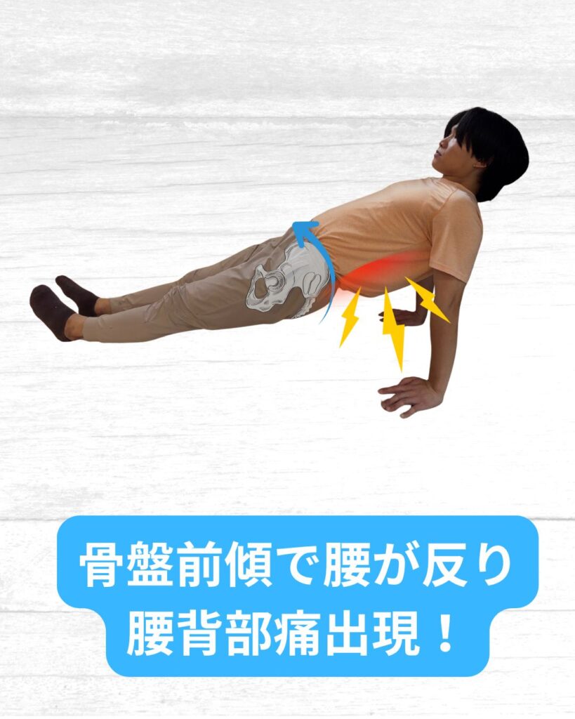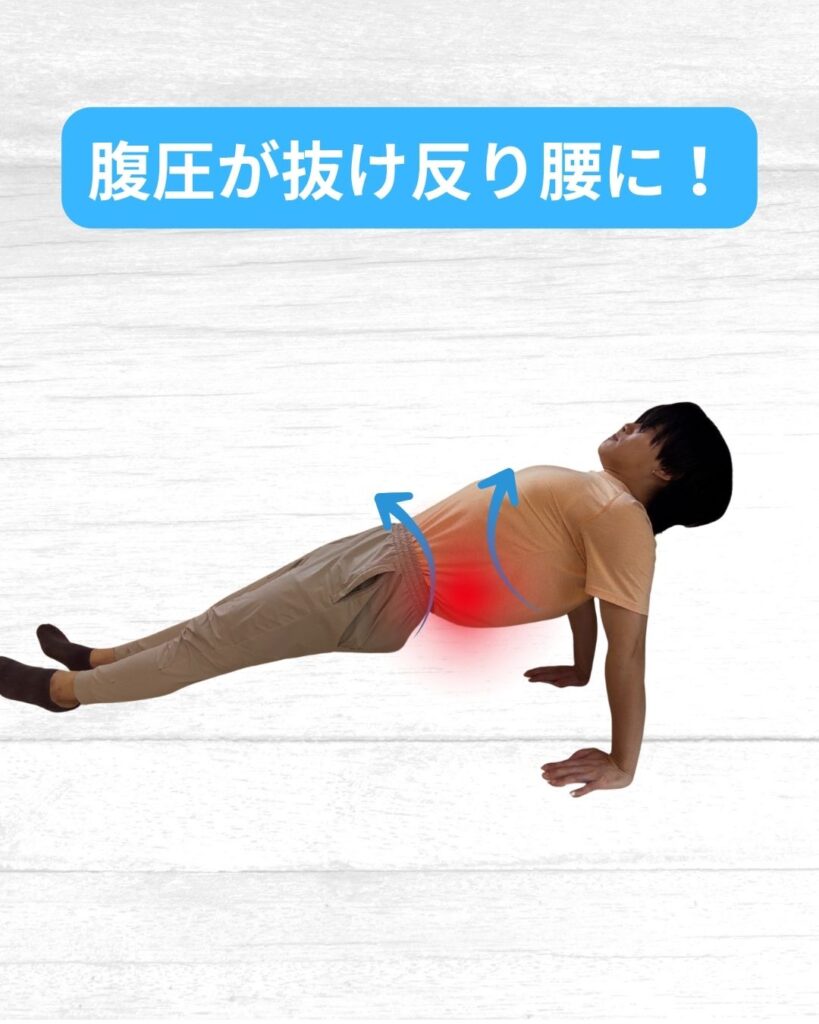 → 腹圧が抜けてリブフレアが起き、腰椎に過伸展ストレスがかかっている可能性があります。