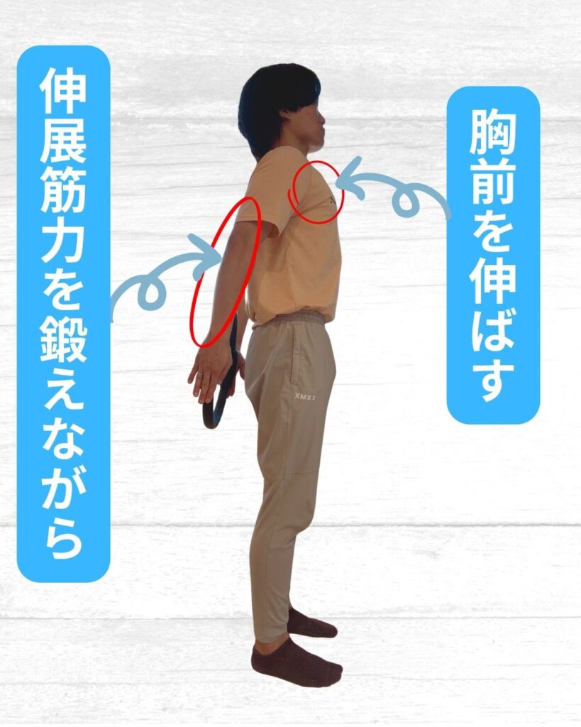 前胸部の開き感を出しつつ、上腕三頭筋を鍛えることができます!