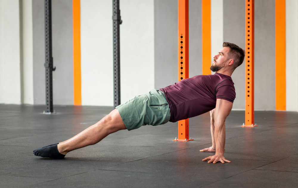 リバースプランクでは胸を開きながら肩を後方に安定させる必要があります。