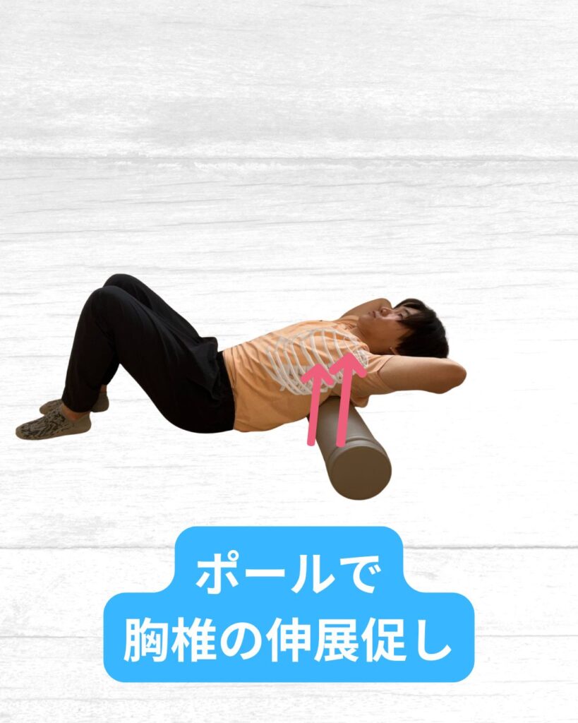 フォームローラーやピラティスボールを使用した胸椎伸展ストレッチが有効です!