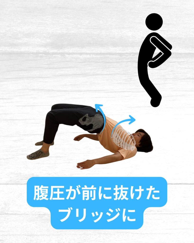 脊柱起立筋優位のブリッジになって、腰痛のリスクが高くなるよということです!