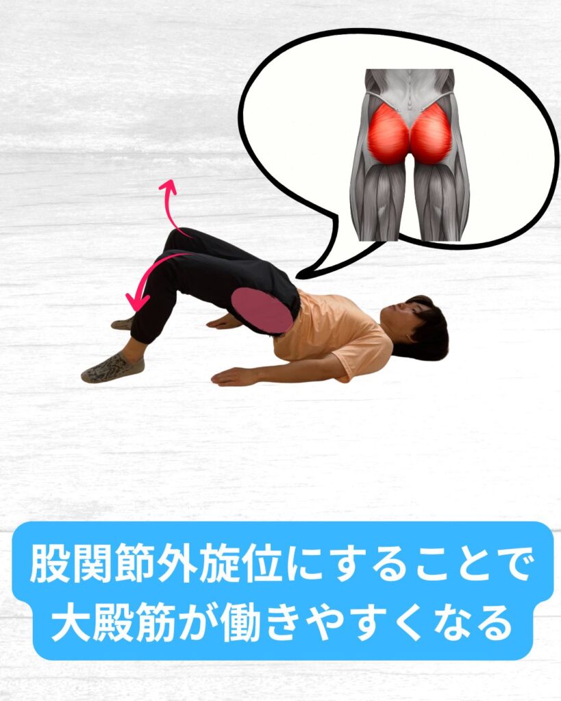 足を最大外転外旋位にした状態でのブリッジを行うのがおすすめです!